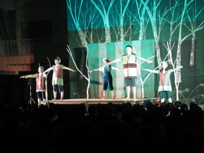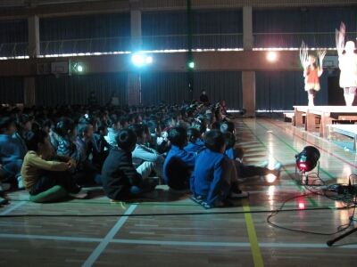 劇団ブナの木の皆さんをお招きして、演劇鑑賞教室を行いました。演目は、『どんぐりと山猫』『注文の多い料理店』の2つで、下学年と上学年の2回に分けて公演していただきました。