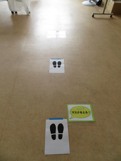 みんなきちんと足跡マークの所に並んで待っています。