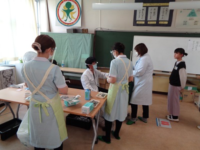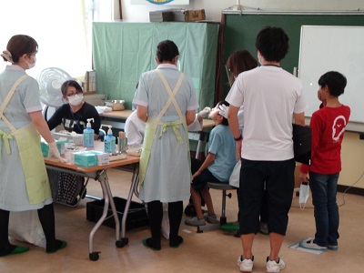 お医者さんの診断を、養護教諭が用紙に記入していきます。