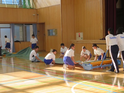 上中生、,体育館のシート巻きがとても懐かしかったようです。