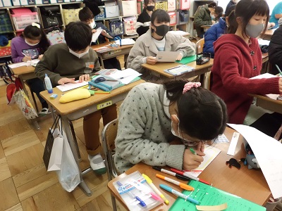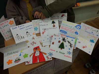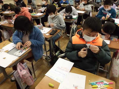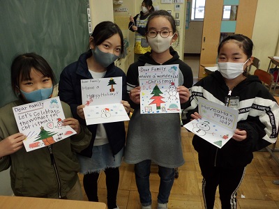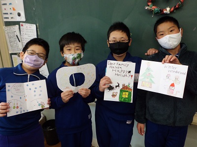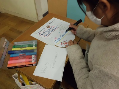クリスマスの時期になると毎年のようにクリスマスカードを作っています。5・6年生は、今年度から文字を書く学習が本格的に始まったので、英文を上手に書き写すことができました。ALTがクリスマスにふさわしい英文を考えてくれました。
