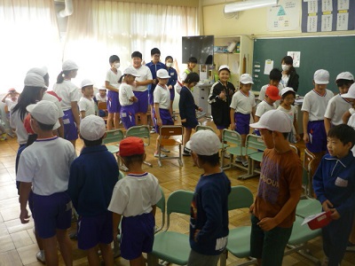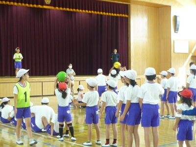 農園活動に行かない班は、教室や体育館でなかよし班遊びをしました。