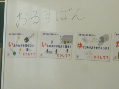 帰宅時、家の周りや郵便ポストを見たり、誰もいないのに「ただいま」と言うことが大切なのはなぜか話し合い、発表をしました。