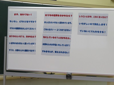 最後に、子供だけでお留守番をしているときに電話が掛かってきたときの受け答えの練習をしました。