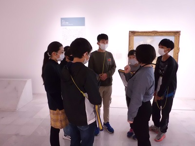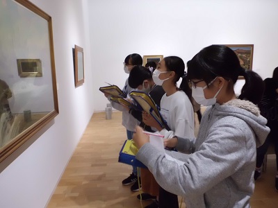絵画について分からないことを学芸員さんに質問しているグループがありました。普段接する機会が少ない学芸員さんから直接話を聞くことができ、とても勉強になったようです。