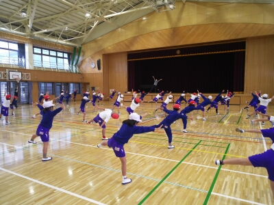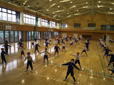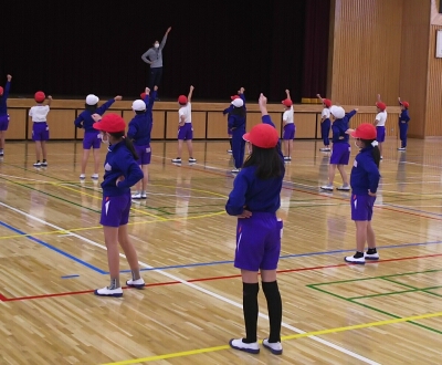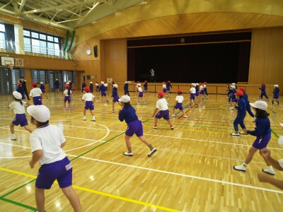 学年練習で、ダンスやラジオ体操、整列など少しずつ動きがそろってきました。