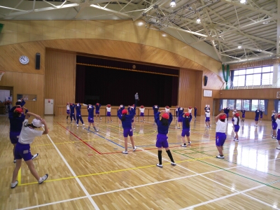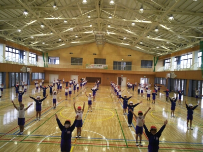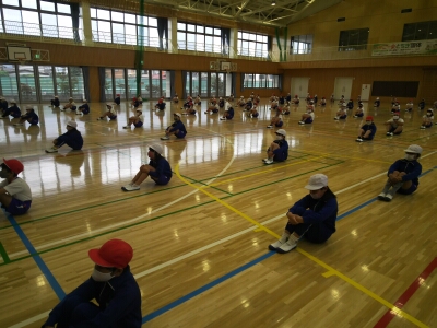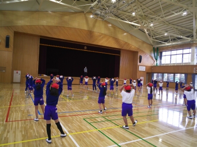 準備運動として、ラジオ体操を行います。