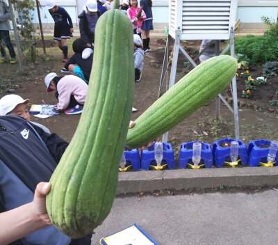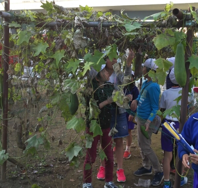 理科の観察のために育てていたヘチマの収穫を行いました。