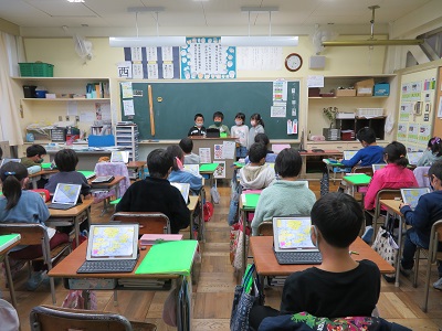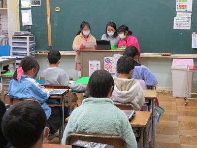 本来は、低学年へ向けての発表ですが、密を避けるためクラスごとの発表となりました。