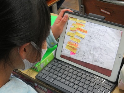 地図をタブレットで撮影して、それをみんなの画面に映し、説明しました。