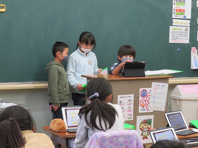 3年生が、発見タイムの時間に「地域の安全マップ」の発表会をしました。