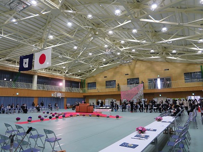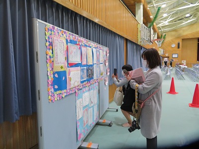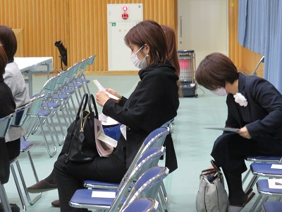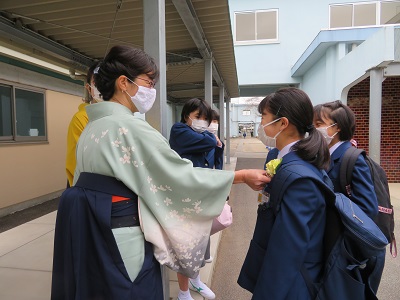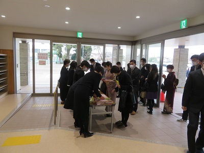 前日に5年生と教職員で準備した会場を、もう一度見直し、卒業生と保護者の方をお迎えしました。