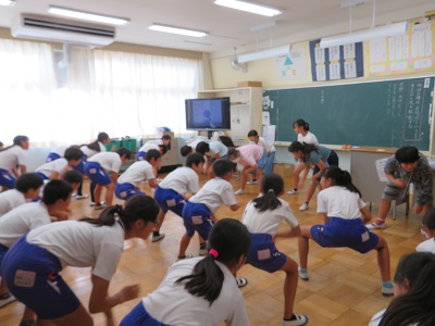 5、6年生は、昼休みになかよし班ごとにソーランの練習をしています。