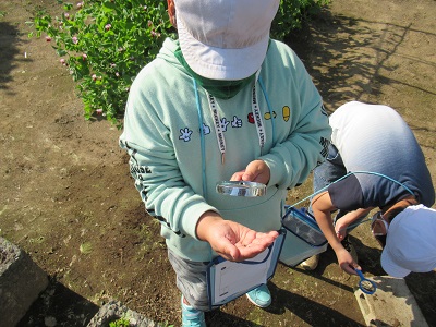 この日は、理科の学習で中庭の植物や生き物の観察をしていました。