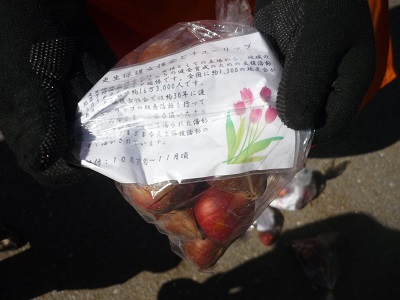 上三川町更生保護女性会の方から、チューリップの球根をいただきました。