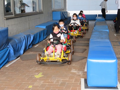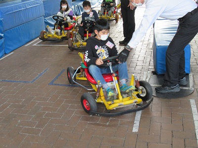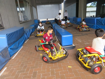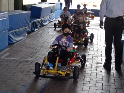 アクセルとブレーキ、ハンドルソーサをしながら、障害物に気を付けて2周ずつ、コースを走りました。