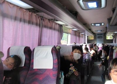 バスの中でも、しっかりマスクをし、DVDを見ながら静かに過ごしました。