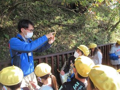 キャスト(森の先生)と一緒に、ツインリンク(レース場)の周りにある山を歩きました。