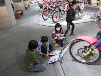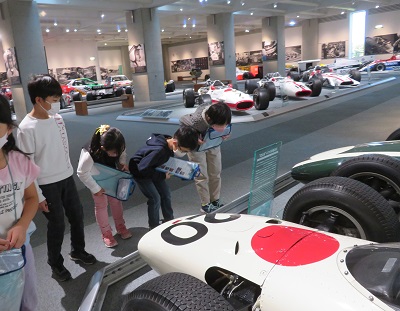 班ごとに、ホンダコレクションホールの中にあるクイズを解いていきます。