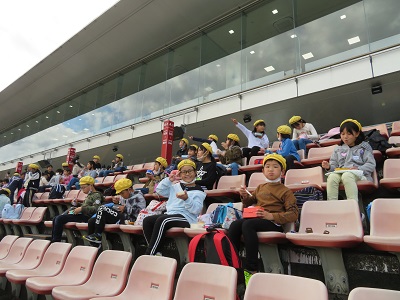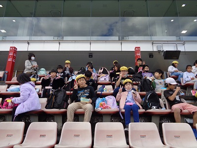 観覧席は急なので、ちょっと怖い児童もいたようです。