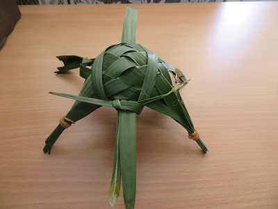 世界に1つしかない、自分が作ったシュロ葉細工のカメです。