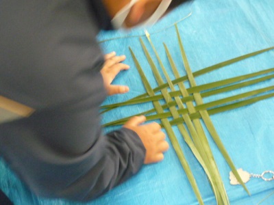 ボランティアの方の御協力により、シュロの葉細工を行いました。
