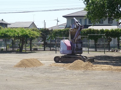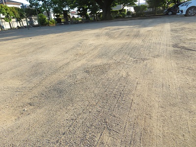 職員で、フェンスを移動したり、ロープを外したりしました。翌日、今までと異なる砂を入れ、重機で平らに均しました。整備前整備後梅雨の季節の前に整備していただき、よかったです。長く使用できるよう、スピードを落とし、安全に気をつけて駐車してください。