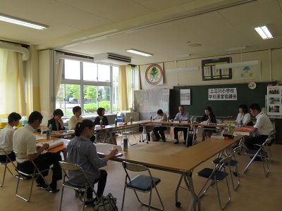 始めに、地域連携教員から、今年度になってからの連携事業についての説明がありました。(①いきいきサロン、②クラブ活動)