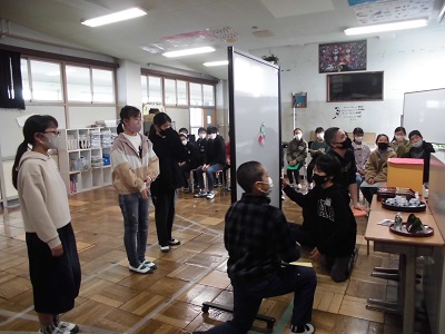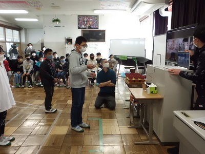 ニュージーランドとのオンライン交流の様子です。日本らしさが出るようなテーマを決めて発表しました。