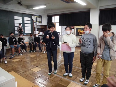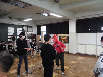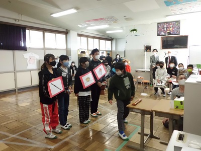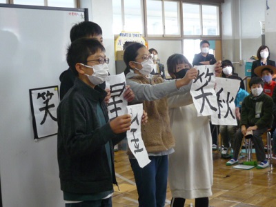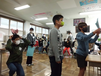 日本のジャンケンを紹介した後に、アメリカと日本とでジャンケンをしました。アメリカのジャンケンも教えてもらい、休み時間に「ロック、ペーパー、シザーズ、シュート」とアメリカのジャンケンを楽しむ姿が見られました。