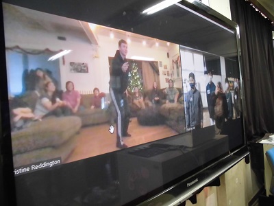次は、アメリカとのオンライン交流の様子です。アメリカの一般家庭に学生さんが集まってくれました。