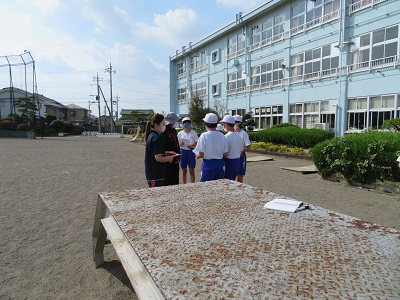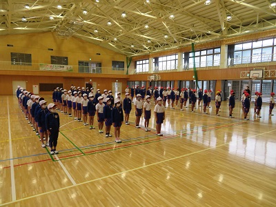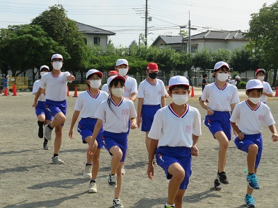 今年は、全校生で開会式を行うため、業間や昼休みに開会式や行進の練習をしています。
