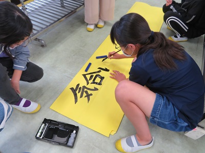 決まったスローガンは、入場行進の時に持って入場するように、6年生が大きく書きました。