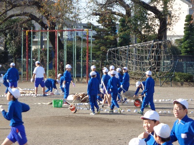 収穫祭の朝は、5、6年生と教員や社協の方、保護者ボランティアの方が準備をしました。