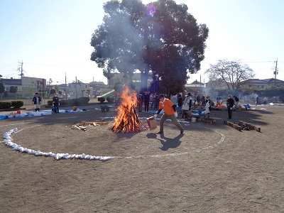児童民生員や自治会長さん、保護者ボランティアの方に、今年から火の番をお願いしました。