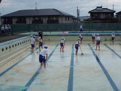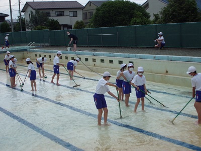 PTA体育部の方と教職員でプール清掃をした翌日に、6年生が仕上げの清掃をしました。