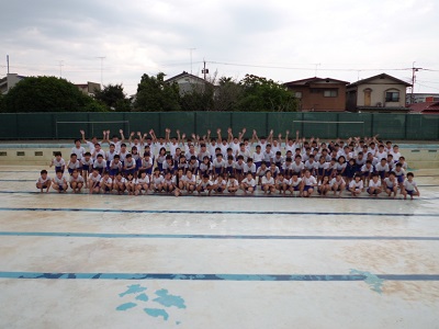 最後に、きれいになったプールの中に入り、みんなで記念撮影をしました。