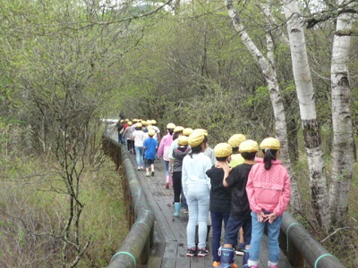 雨は上がり、戦場ヶ原展望所を目指し、木道を散策しました。