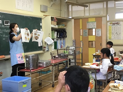 給食の時間に栄養士の先生が来校し、食について学習しました。