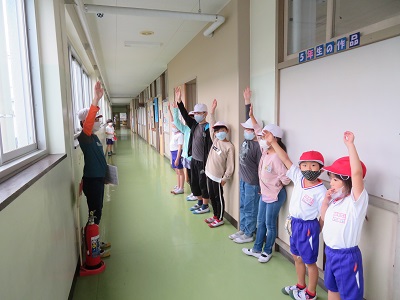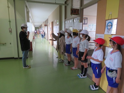 清掃が終わると廊下に並び、班長を中心に清掃のふり返りをします。