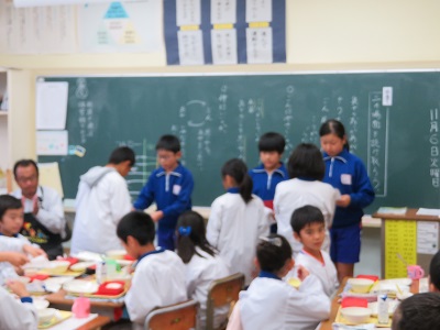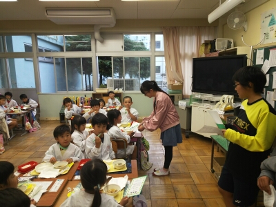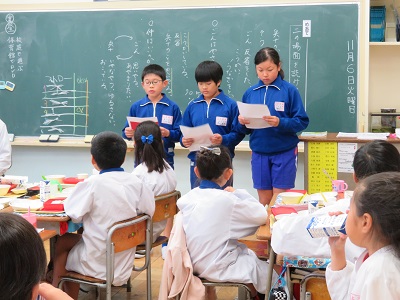 図書委員の児童が給食の時間に各教室を回り、クラス内の多読賞を発表し、表彰しました。