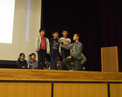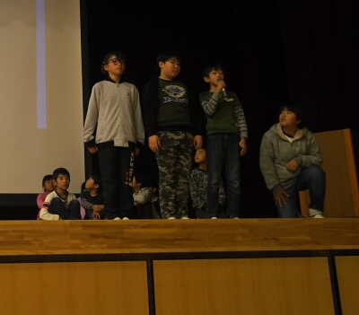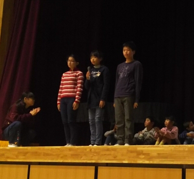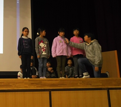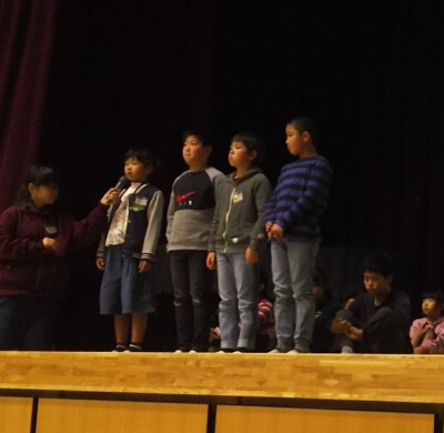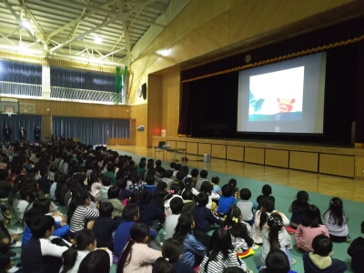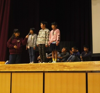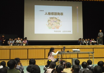 1年生から6年生まで、クラス代表児童が人権標語の発表を行いました。その後、人権啓発のビデオを見ました。