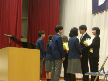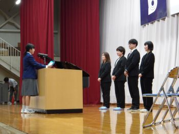 3カ年皆勤賞、9カ年皆勤賞、体育運動優良生徒、善行篤行表彰などの表彰を行いました。