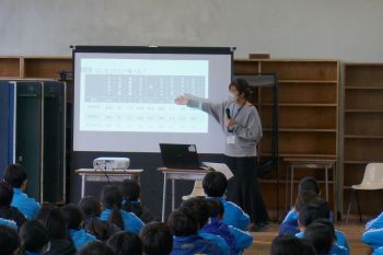 2学年が給食センターの栄養教諭を講師に迎えて、「食に関する講話」を行いました。