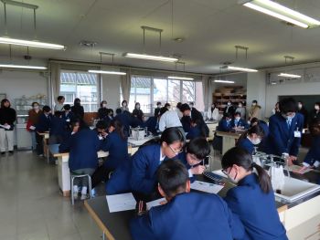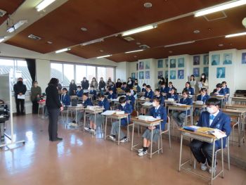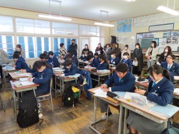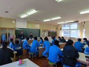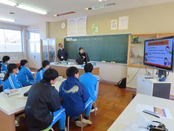 町社会福祉協議会の方々にお越しいただき、家庭科の授業で高齢者についての講話をしていただきました。