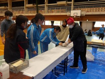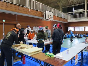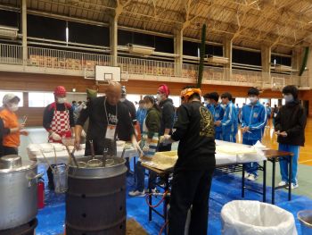 栃木てるてる坊主の会の皆さんが、被災地で行っている炊き出しを行ってくださり、生徒たちは炊き出しの美味しいラーメンをいただきました。