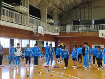 1年生が、学年レクレーションを行いました。ドッジボールとボッチャを行い、盛り上がりました。