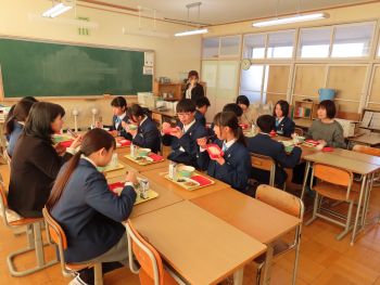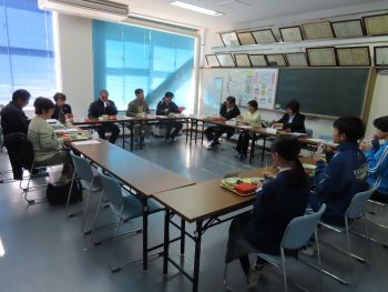 今年度最後の学校運営協議会を行いました。今回は委員の皆さんと生徒会の生徒が給食を食べながら懇談しました。