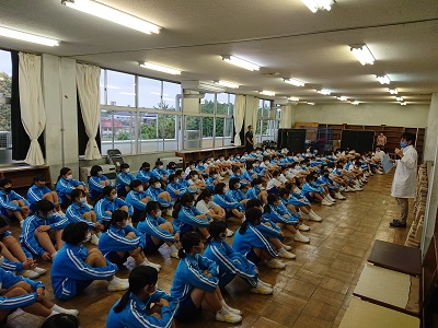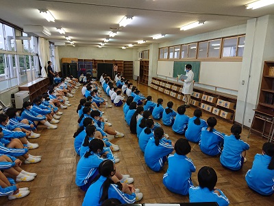 清掃終了後、1年生が9月28日(月)の校外学習の事前集会を行いました。