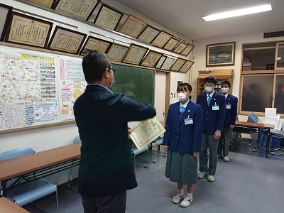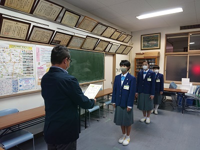 本日、2学期の学級委員の認証式が行われました。